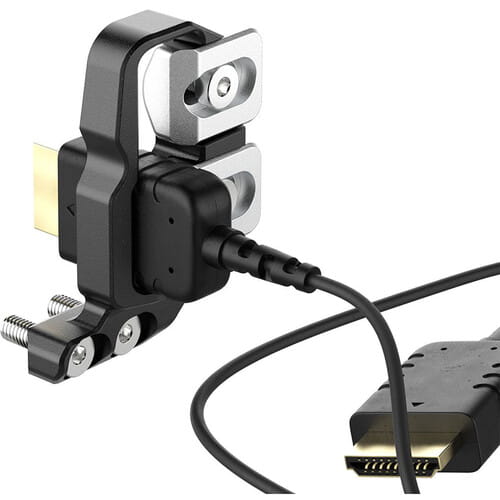 Prezentowany zacisk ochronny kabla 8Sinn HDMI & USB C został zaprojektowany specjalnie dla klatki 8Sinn Leica SL2 / SL2-S. Jego zadaniem jest utrzymanie kabli stabilnie, gdy są one podłączone do kamery i zapobiec przypadkowemu rozłączeniu. Zacisk kablowy jest dostarczany z czterema śrubami montażowymi M4. Dwie z nich służą do mocowania zacisku kablowego do klatki, a pozostałe dwie do ustawiania, jak mocno kable mają być zaciśnięte.