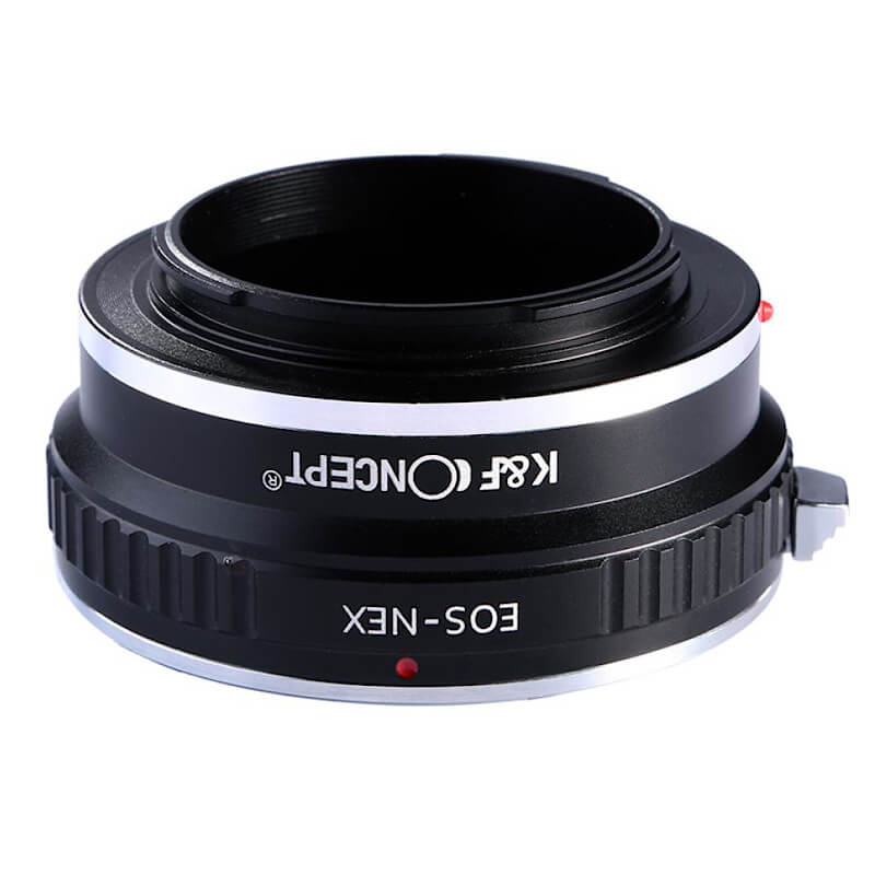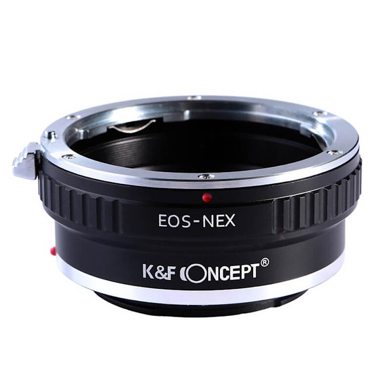 Wytrzymały, manualny adapter bagnetowy K&F Concept umożliwiający stosowanie obiektywów z mocowaniem Canon EF z aparatami fotograficznymi Sony z bagnetem E-mount (seria Sony NEX: aparaty A7, A7S, A7R, A5000, A6000 i inne).