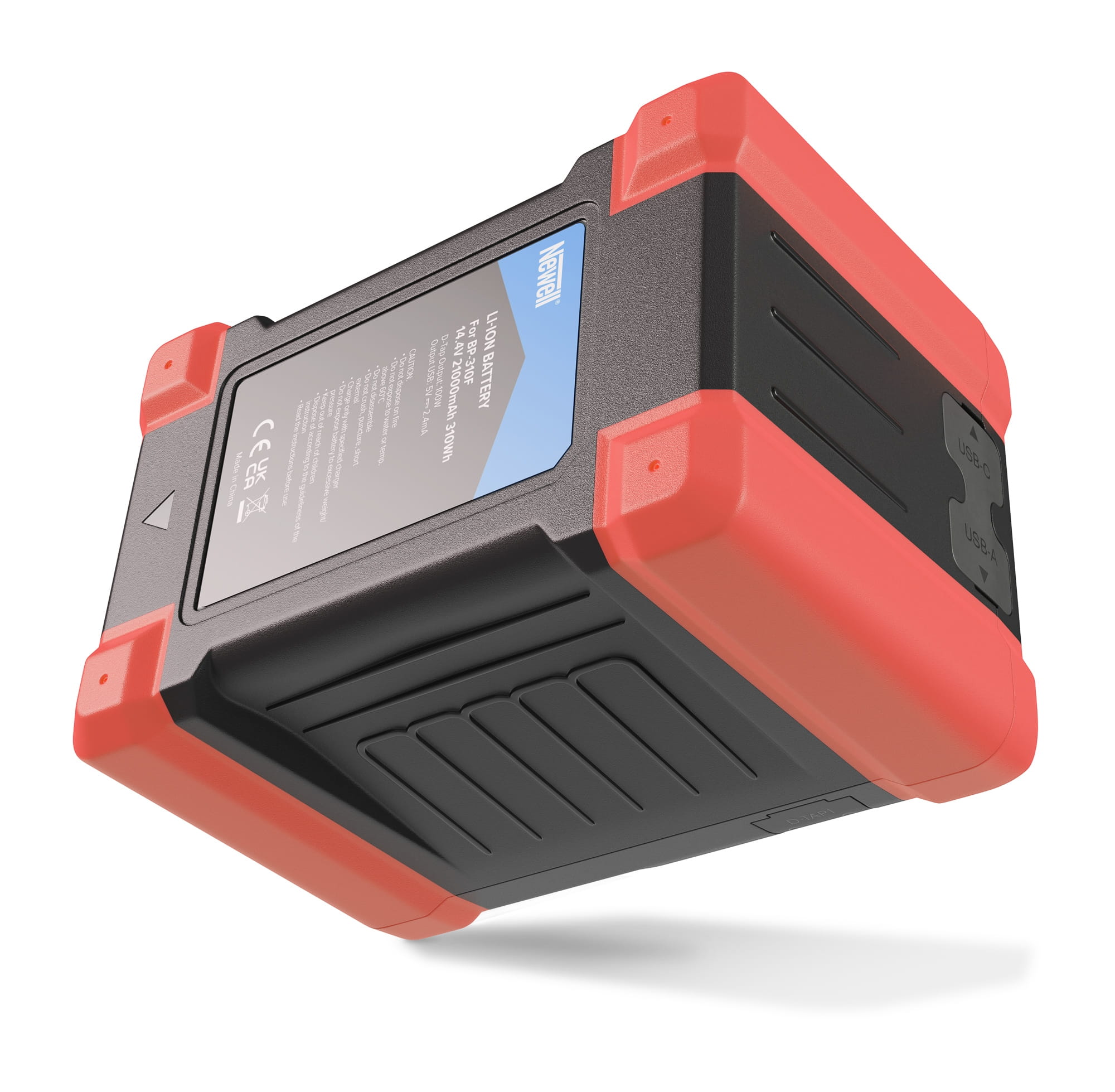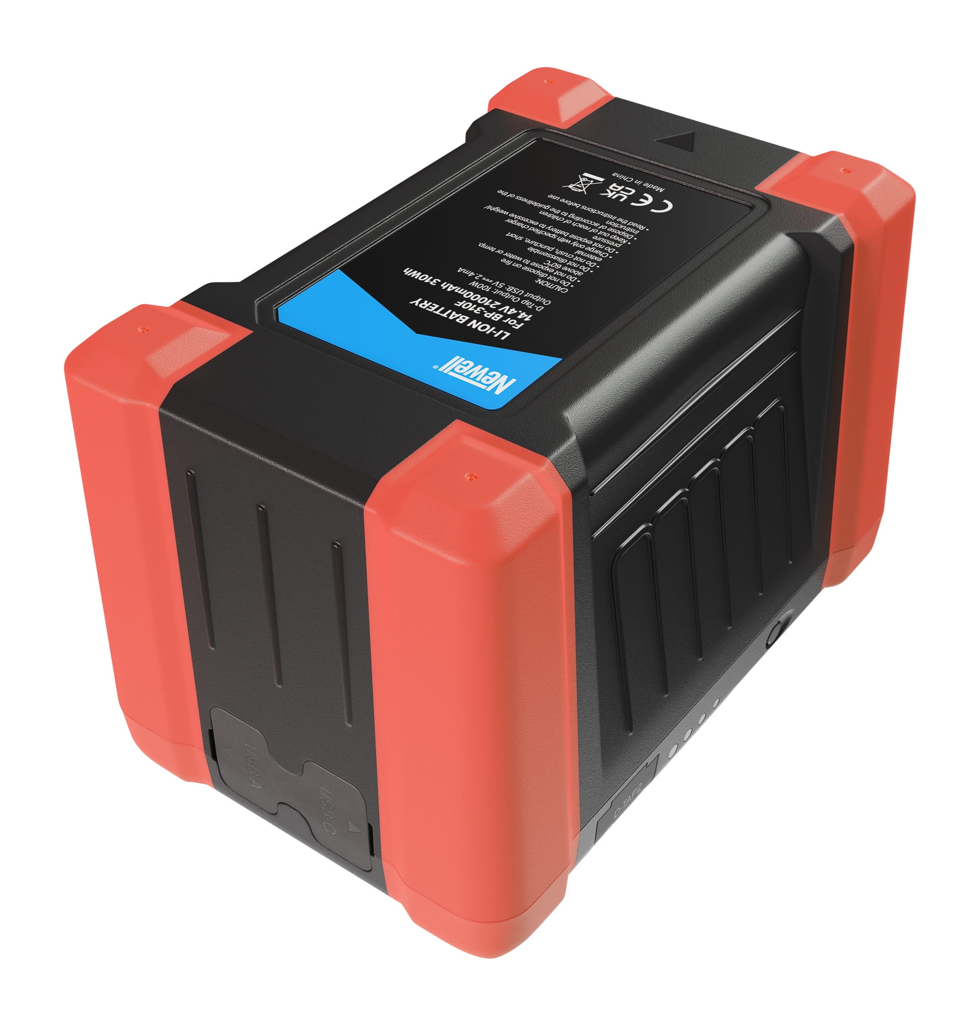 - Gniazdo D-Tap – Jeżeli posiadasz ładowarkę D-Tap, na przykład Newell D-Tap 16,8 V 5 A, możesz wykorzystać ten port, aby naładować akumulator Newell BP-310F V-Mount z pełną dostępną mocą.
