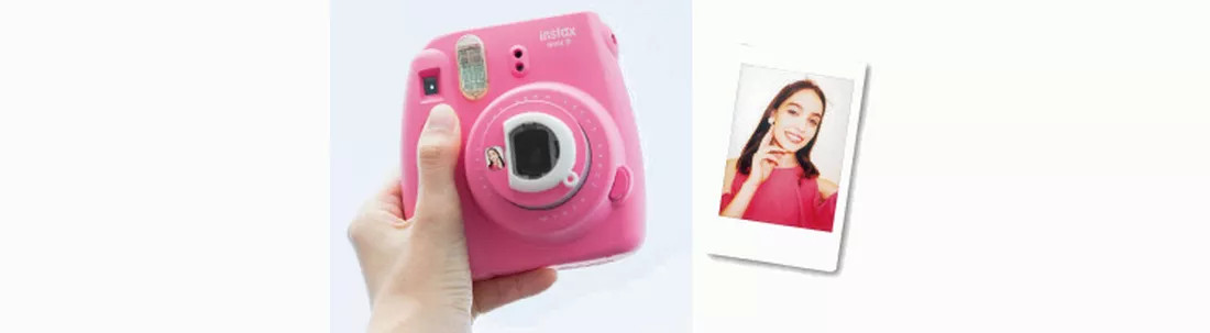 Odświeżona gama Instax Mini 9 została wyposażona w lusterko do selfie i obiektyw do zbliżeń. Szereg cech znanych z mini 8, takich jak automatyczny pomiar ekspozycji w celu dobrania właściwej przysłony oraz tryb jasnej tonacji, umożliwia wykonywanie jaśniejszych zdjęć – idealne rozwiązanie dla fotografii portretowych.