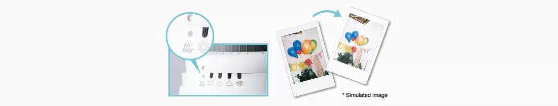 Instax Mini 9 fioletowy automatycznie określa oświetlenie danego zdjęcia i podświetla najwłaściwsze ustawienie, odpowiadające zastanym warunkom. Należy obrócić pokrętło regulacji jasności na wskazane ustawienie.