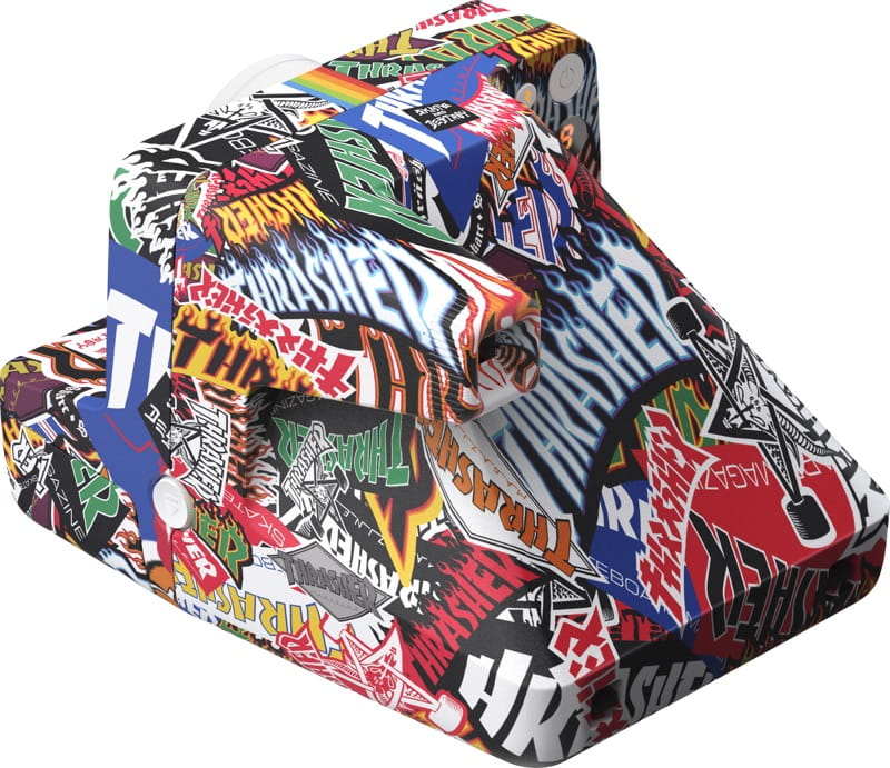 Specjalne podejście do łatwego aparatu natychmiastowego Polaroid, wykończone kolażem Thrasher zanurzonym w wodzie, dzięki czemu każda jednostka wygląda nieco inaczej. Pod niestandardową powłoką kryje się Now Generation 3, zbudowany w celu zapewnienia ostrzejszych zdjęć w lepszych warunkach oświetleniowych, przy jednoczesnym zachowaniu klasycznego analogowego doświadczenia.