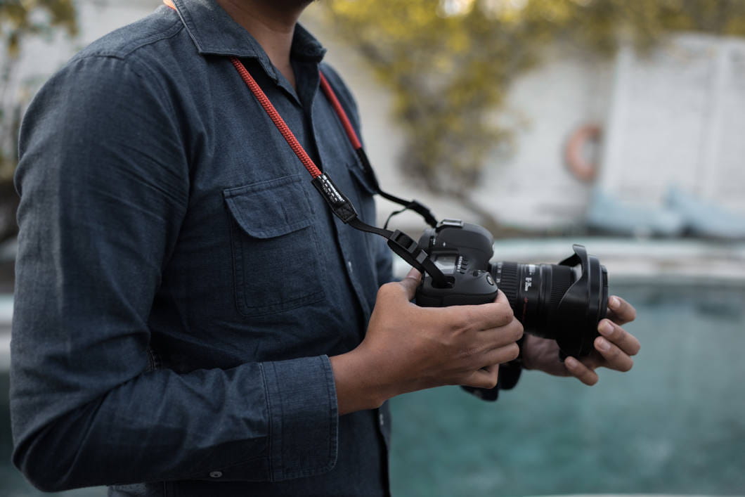 Należy pamiętać, że pasek ma system mocowania typu taśmowego. Za pomocą trójkątnego pierścienia można go również przymocować do aparatów z oczkami.