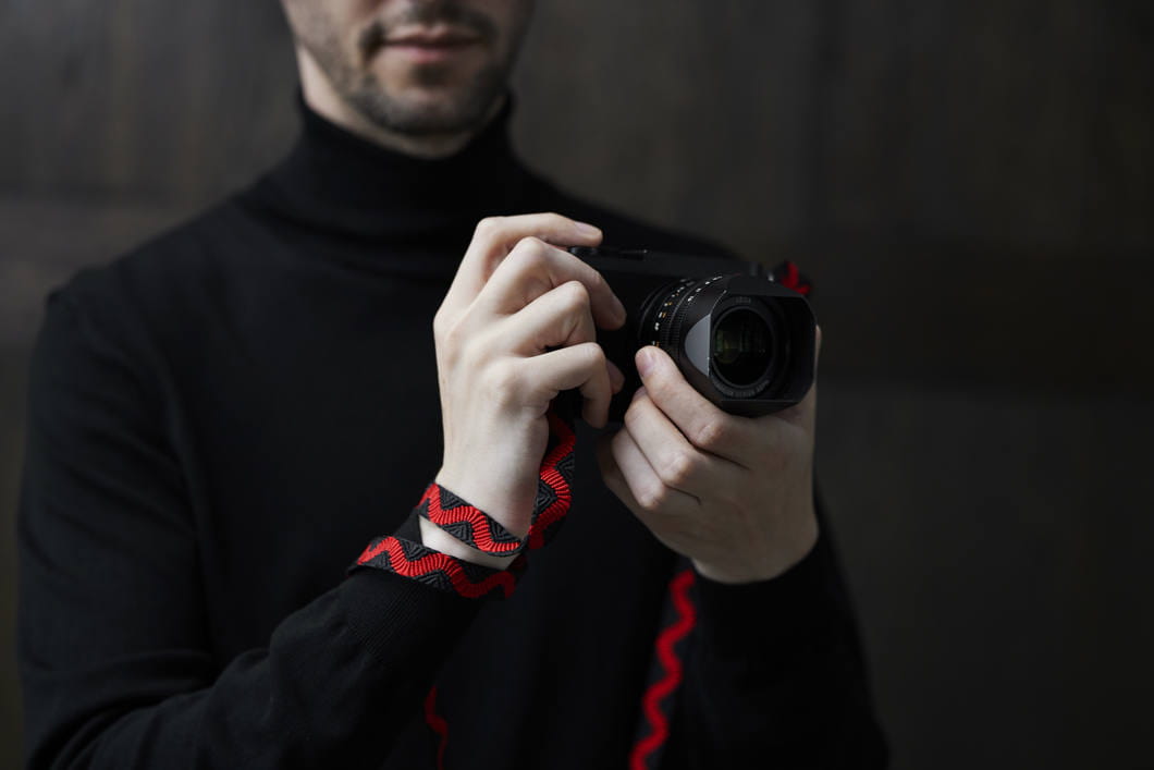 artisan & artist | acam-317 | silk camera strap w/ traditional japanese pattern, blk/red