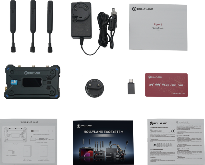 Pyro S to przełomowy dodatek do serii Hollyland Pyro, który na nowo definiuje bezprzewodową transmisję wideo. Pyro S obsługuje wejścia/wyjścia HDMI i SDI i może przesyłać sygnał do czterech odbiorników jednocześnie, z zasięgiem do 400 m i minimalnym opóźnieniem wynoszącym zaledwie 50 ms.