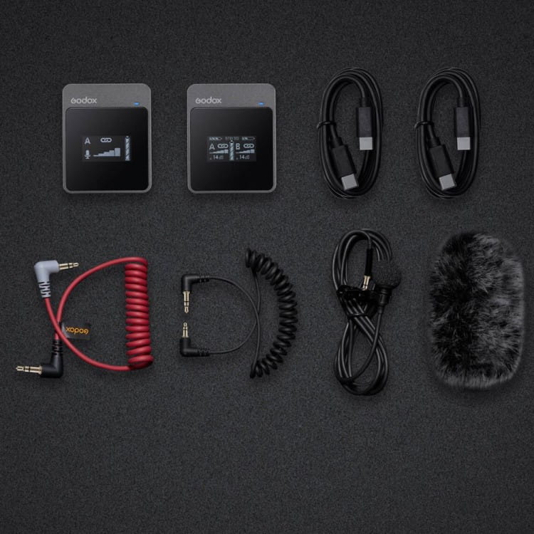 System oferuje ultra-kompaktowy przypinany nadajnik, mikrofon lavalier i dwukanałowy odbiornik montowany na aparacie, aby zapewnić przenośne i kompleksowe rozwiązanie, które umożliwia nagrywanie dźwięku do kamery lub telefonu za pomocą gniazda 3,5 mm.