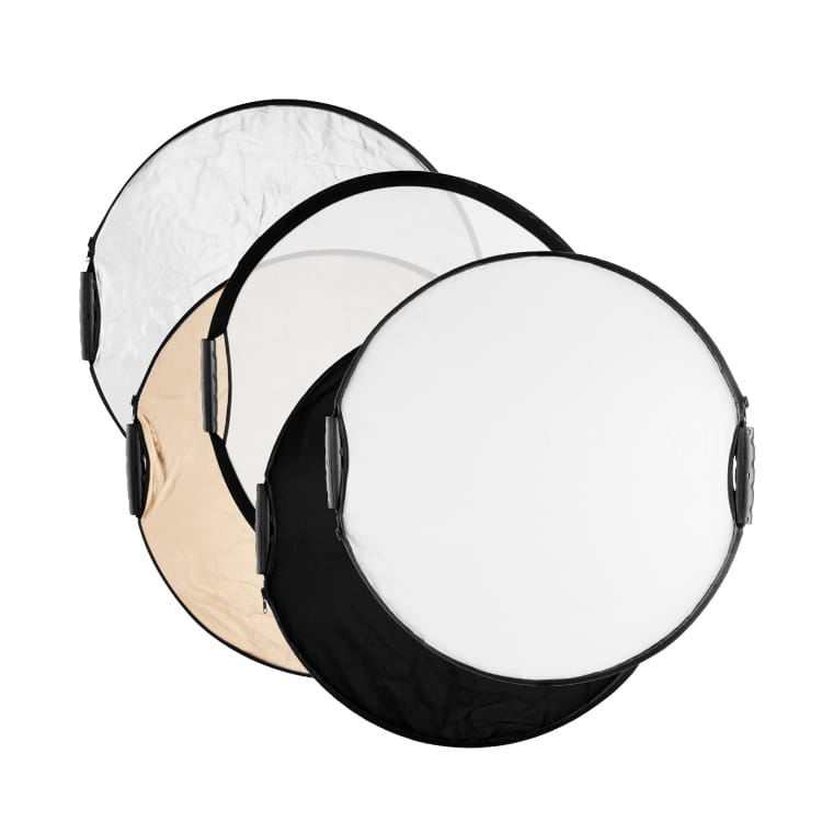 Blenda 60cm 5w1 sprawdzi się zarówno w terenie, jak i domowym studio. Pozwala w szybki sposób wykorzystać światło zastane (słoneczne lub lamp), zmieniając jego charakter i kierunek. W zestawie znajduje się 5 płaszczyzn wpływających w różny sposób na odbite światło. Dwa uchwyty znajdujące się po bokach blendy ułatwiają operowanie nią w czasie sesji przez asystenta.
