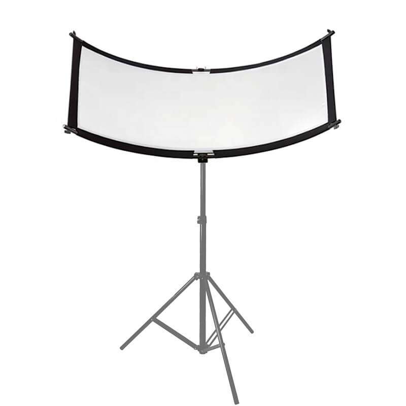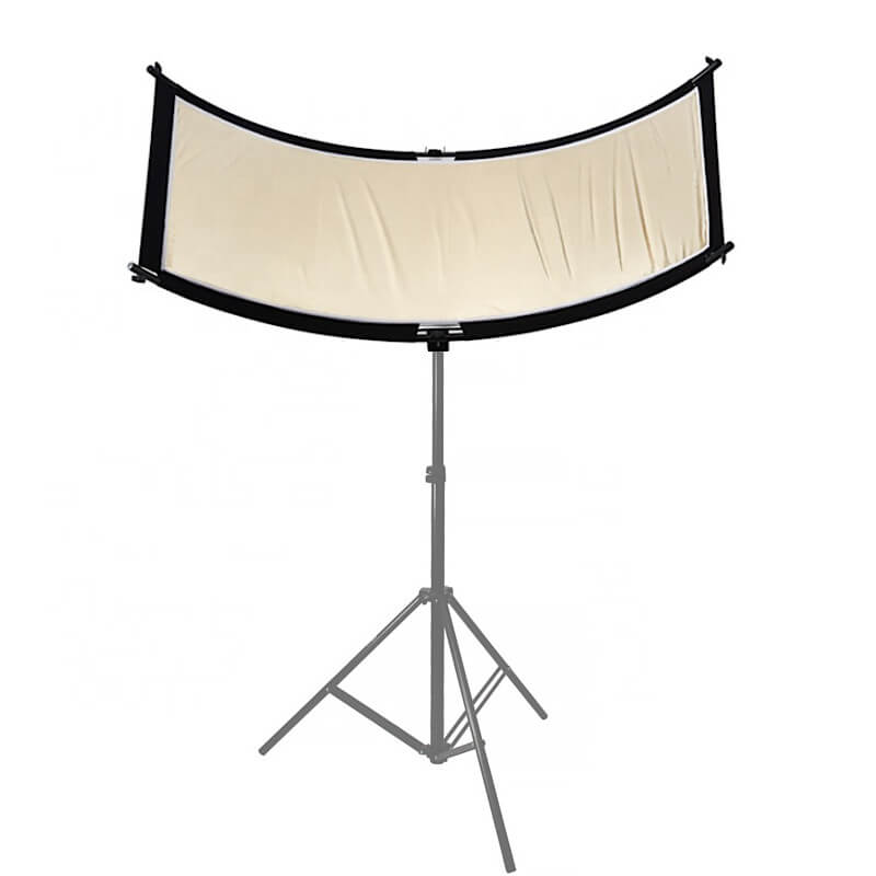 Blenda typu U Mitoya Eyelighter to zakrzywiony panel odblaskowy zaprojektowany z myślą o uzyskaniu równomiernego oświetlenia w fotografii portretowej, beauty czy glamour, przy korzystaniu ze światła padającego na modela z góry. Umieszczony na profilowanym stelażu odbłyśnik pozwala na precyzyjną kontrolę światła odbitego, skutecznie i plastycznie doświetlając dolne partie twarzy, szyi i dekoltu fotografowanej osoby, co byłoby utrudnione przy korzystaniu z tradycyjnej, płaskiej blendy. Duża powierzchnia panelu sprawia, że z powodzeniem może być on stosowany także przy fotografowaniu szerszych kadrów.