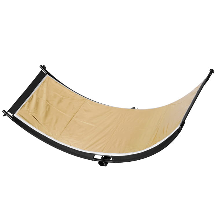 Blenda panoramiczna FreePower 180cm to zakrzywiony panel z kompletem czterech naciąganych płaszczyzn. Tego typu akcesorium jest dedykowane do zdjęć portretowych, gdzie zadaniem jest tworzenie światła wypełniającego na twarzy fotografowanej osoby. Specjalnie zakrzywiony kształt daje możliwość pełnego i równomiernego wypełnienia światłem miejsc, gdzie może nie dotrzeć światło lampy ustawionej na modelkę lub modela (szyja, podbródek, usta, kości policzkowe). Ten model panelu oferuje aż 4 różne warianty płaszczyzn. Pierwsza, srebrno-czarna jest podstawową płaszczyzną, do której za pomocą rzepów przyczepia się pozostałe. Płaszczyzny dostępne w zestawie: