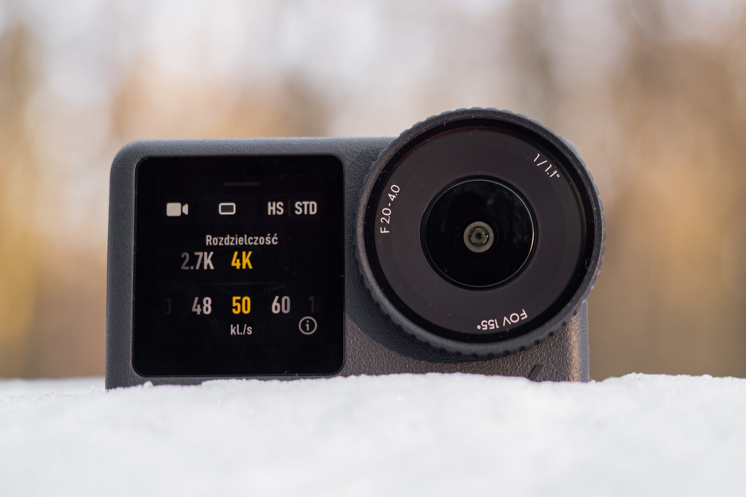 Action 6 została wyposażona w 1/1.1-calowy sensor CMOS o zakresie dynamicznym sięgającym 13,5 EV. Dzięki temu kamera lepiej radzi sobie w wymagających warunkach oświetleniowych, rejestrując więcej szczegółów w światłach i cieniach. Kwadratowa konstrukcja sensora umożliwia nagrywanie w trybie 4K Custom (3840×3840), co daje ogromną elastyczność kadrowania, bez trudu stworzysz materiały zarówno w poziomie (16:9), jak i pionie (9:16) czy w kwadracie (1:1). To pierwsza kamera sportowa DJI z mechaniczną przysłoną, którą można regulować w zakresie f/2.0 – f/4.0. Wartość f/2.0 pozwala na lepsze nagrania w słabym oświetleniu, natomiast wartość f/4.0 daje większą głębię ostrości i odpowiednią ekspozycję bez stosowania filtrów ND.