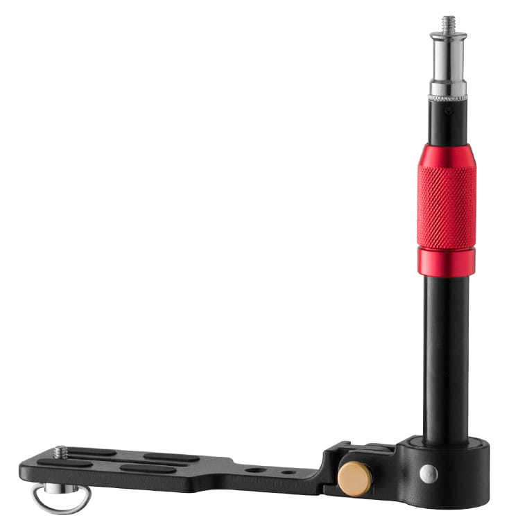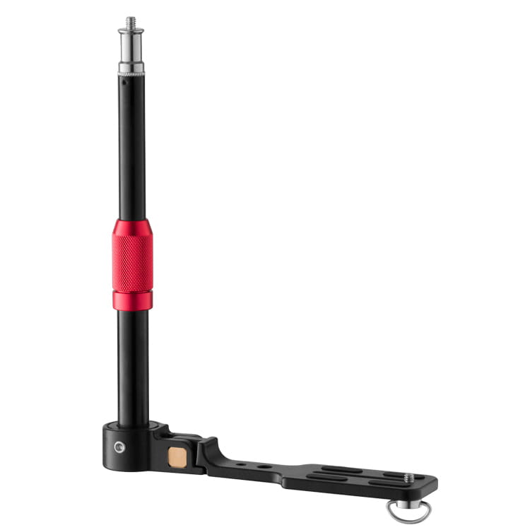 Uchwyt jest składany, co ułatwia przechowywanie w torbie. Specjalna blokada na korpusie bracketu pozwala szybko rozłożyć akcesorium. Dodatkowo, pręt na którym mają być mocowane lampy ma regulowaną wysokość w zakresie 22-27cm.
