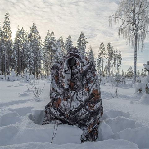 Bag Hide został opracowany przez fotografów przyrody i dzikich zwierząt: Była intensywnie używana, testowana i dostosowywana w razie potrzeby. Zaprojektowaliśmy torbę tak, aby wygodnie przylegała do głowy za pomocą pierścienia. Utrzymuje to torbę na miejscu, podczas gdy okienko (z siatką przeciw owadom) pozwala sprawdzić otoczenie przed sobą. Bag hide to proste rozwiązanie, które obecnie oferujemy w kilku różnych wzorach kamuflażu. Ponadto oferujemy lekkie wersje w trzech wzorach kamuflażu.