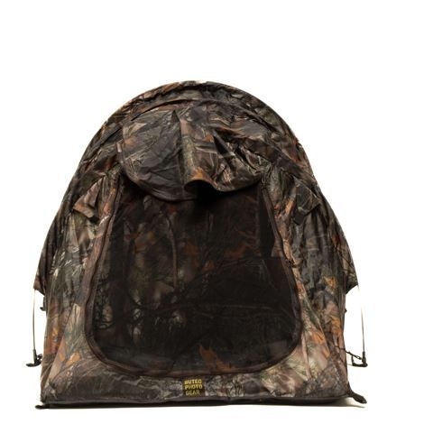 Po wejściu do namiotu zobaczysz, że jest on bardzo ciemny ze względu na czarną powłokę wewnątrz. Z przodu znajduje się jedno okno fotograficzne. Opcjonalnie możliwe jest zamontowanie osłony obiektywu lub osłony snoot do okna fotograficznego, co również kamufluje obiektyw i chroni go przed ewentualnym deszczem i kurzem. Dodatkową korzyścią jest to, że ręce są niewidoczne podczas obsługi aparatu.