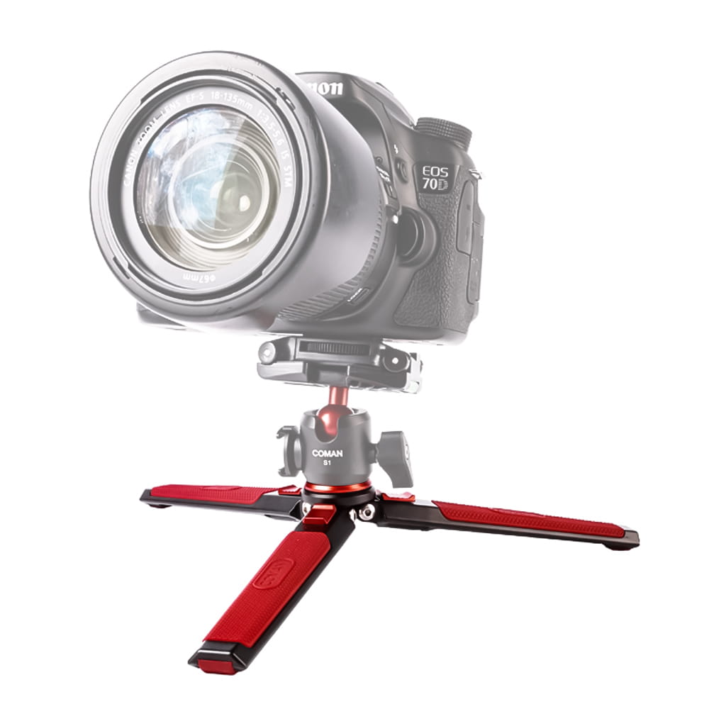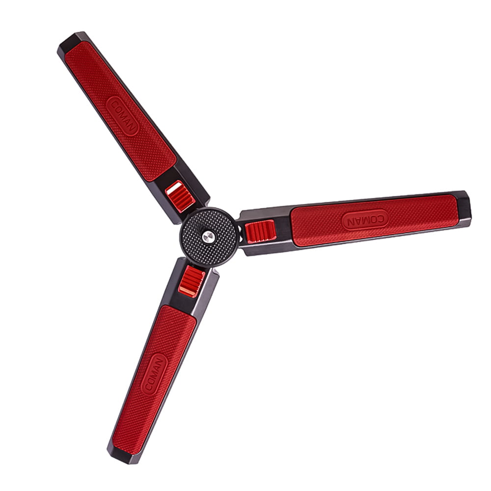 Coman MT25 to model niewielkiego, a jednocześnie masywnego i bardzo wytrzymałego statywu stołowego. Wykonany został ze stopu aluminium i jest przeznaczony jest do pracy z aparatami bezlusterkowymi, smarftonami, a także kamerami sportowymi. Posiada gwintowanie w standardzie 1/4'' i oferuje udźwig aż do 2,5 kg - pozwoli na bezpieczny montaż sprzętu foto-video, a także różnego rodzaju kompatybilnych głowic.