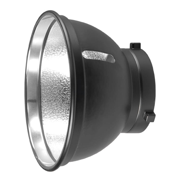 Czasza ø 17 cm i kącie 55° Portable to lekka aluminiowa czasza (reflektor) do studyjnych lamp błyskowych z mocowaniem typu Bowens. Lampy, do których będzie pasować to m. in. : Lampy producentów Jinbei, FreePower, PowerLux.