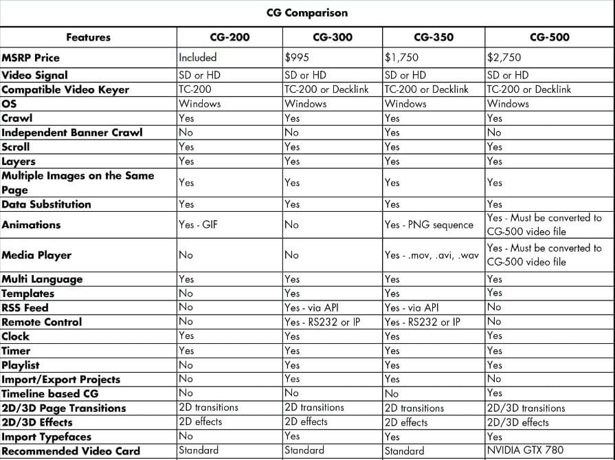Datavideo TC-200 to system do tworzenia i nakładania grafiki online. System dla mobilnych transmisji Datavideo CG-200 i TC-200 HD CG. Przy użyciu standardowego laptopa użytkownik może tworzyć i dostarczać grafiki w czasie rzeczywistym. Intuicyjne oraz łatwe w obsłudze. CG-200 i TC-200 pracuje ze standardowymi laptopami Windows z wyjściem HDMI i wspiera miksery video które nie posiadają DSK. Do tej pory oprogramowanie do napisów w czasie rzeczywistym wymagało dodatkowej karty SDI w komputerze.