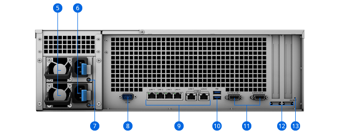 Serwer RS4021xs+ jest wyposażony w dwa gniazda PCIe zapewniające wydajność, obsługę sieci i rozbudowę pamięci masowej, dzięki czemu można go dostosować do potrzeb dowolnego środowiska biznesowego.