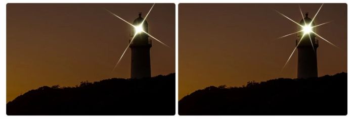 Dzięki regulowanej funkcji 8x lub 4x można uzyskać na zdjęciu efekt ośmioramiennej lub czteroramiennej gwiazdy, w miejscu występowania błysku promieni słonecznych lub innych źródeł światła, takich jak lampy, lampki, latarnie uliczne, światła samochodów, płomienie świec. Błyski promienie słonecznych lub innych źródeł światła rozchodzą się w ośmiu lub czterech kierunkach, co daje zdumiewający efekt wizualny. Zdjęcia w takim oświetleniu są ciekawsze. Filtr wykorzystywany do zdjęć i filmów nocą, biżuterii, odblasków na wodzie, zdjęć o stylistyce glamour.