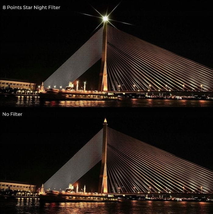Dzięki regulowanej funkcji 8x lub 4x można uzyskać na zdjęciu efekt ośmioramiennej lub czteroramiennej gwiazdy, w miejscu występowania błysku promieni słonecznych lub innych źródeł światła, takich jak lampy, lampki, latarnie uliczne, światła samochodów, płomienie świec. Błyski promienie słonecznych lub innych źródeł światła rozchodzą się w ośmiu lub czterech kierunkach, co daje zdumiewający efekt wizualny. Zdjęcia w takim oświetleniu są ciekawsze. Filtr wykorzystywany do zdjęć i filmów nocą, biżuterii, odblasków na wodzie, zdjęć o stylistyce glamour.
