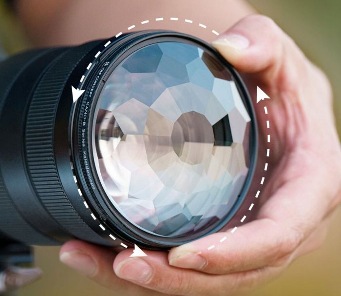Filtr kalejdoskopowy umożliwia wielokrotne załamanie pojedynczego obrazu w zależności od ogniskowej. Charakterystyczne nakładanie się obrazu tworzy złudzenia optyczne, co jest pożądanym efektem w fotografii artystycznej, beauty, glamour, filmach, teledyskach, scenach nocnych i reklamach. Filtr kalejdoskopowy to niecodzienny środek wyrazu artystycznego, który pozwoli ci czerpać przyjemność z eksperymentowania z różnymi technikami fotograficznymi, osiągając bardzo oryginalny rezultat.