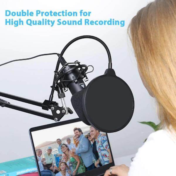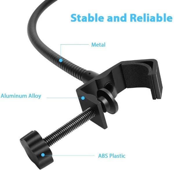 Ulepszony stalowy metalowy elastyczny uchwyt stabilizujący 360 ° z ramieniem chwytnym i uchwytem w pełni utrzymuje ciężar filtra i utrzymuje go na miejscu. Bardzo łatwo jest dostosować kąt i odległość do oczekiwanego miejsca, aby uzyskać głos doskonałej jakości.