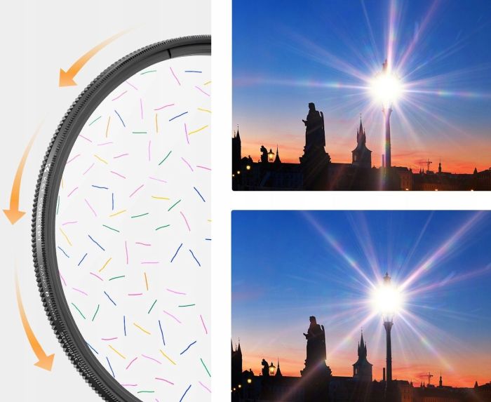 - Filtr posiada specjalne nano-powłoki zapewniające znaczącą redukcję odblasków i poprawę wykonywanych zdjęć.