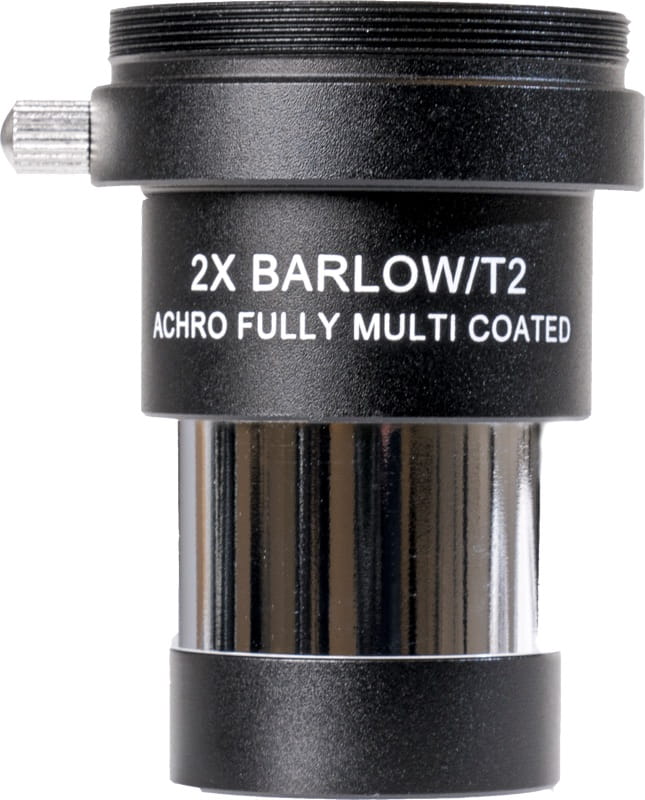 2X Barlow: Używaj podczas obserwacji wizualnych, aby podwoić powiększenie każdego posiadanego okularu 1,25”.