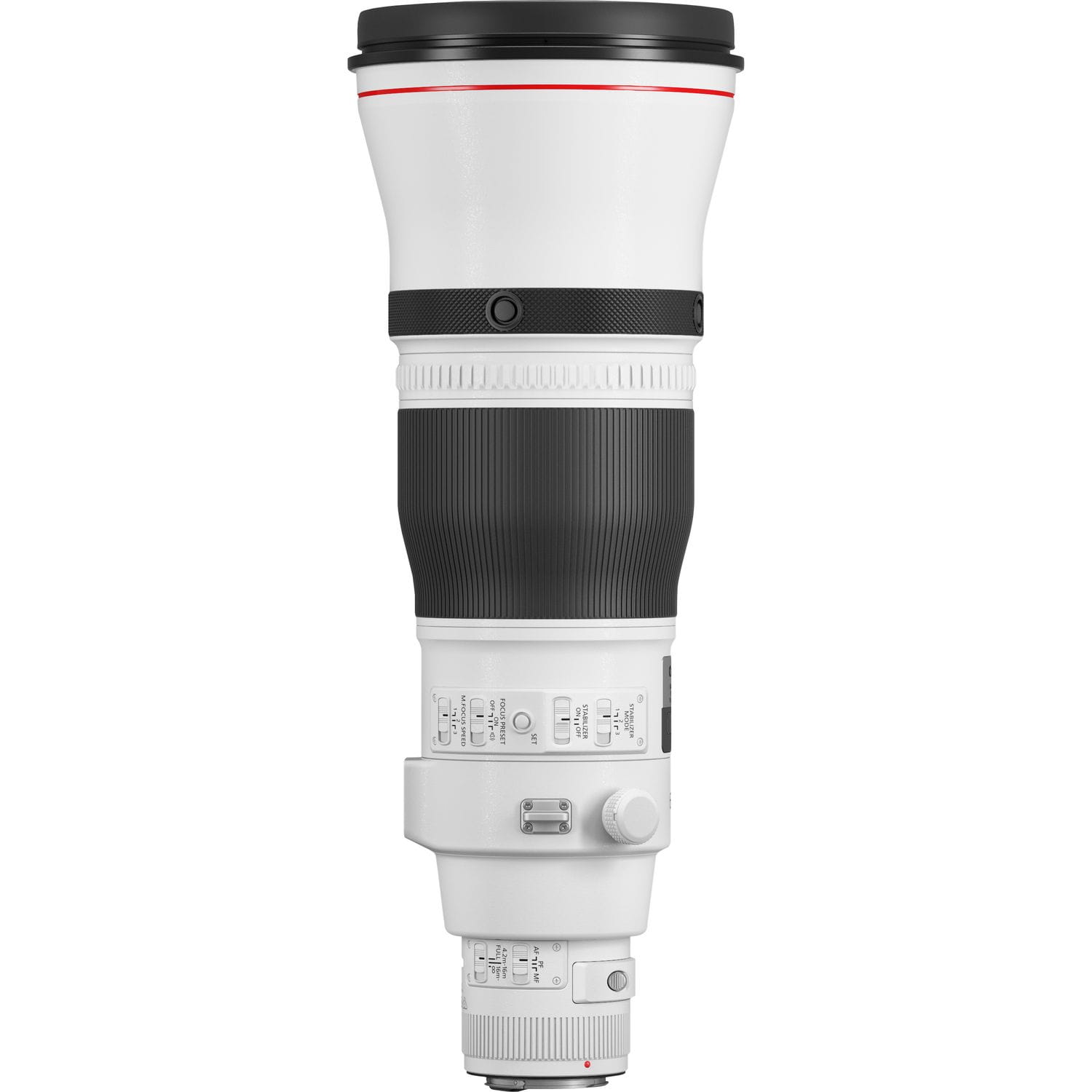 Obsługiwane koniuszkami palców elementy sterujące umożliwiają uruchomienie lub zatrzymanie AF, lub chwilowe jego zablokowanie. W obiektywie Canon EF 600mm f4 III L można szybko przywołać dwie wstępnie zaprogramowane odległości ostrzenia – wystarczy jedno naciśnięcie przycisku.