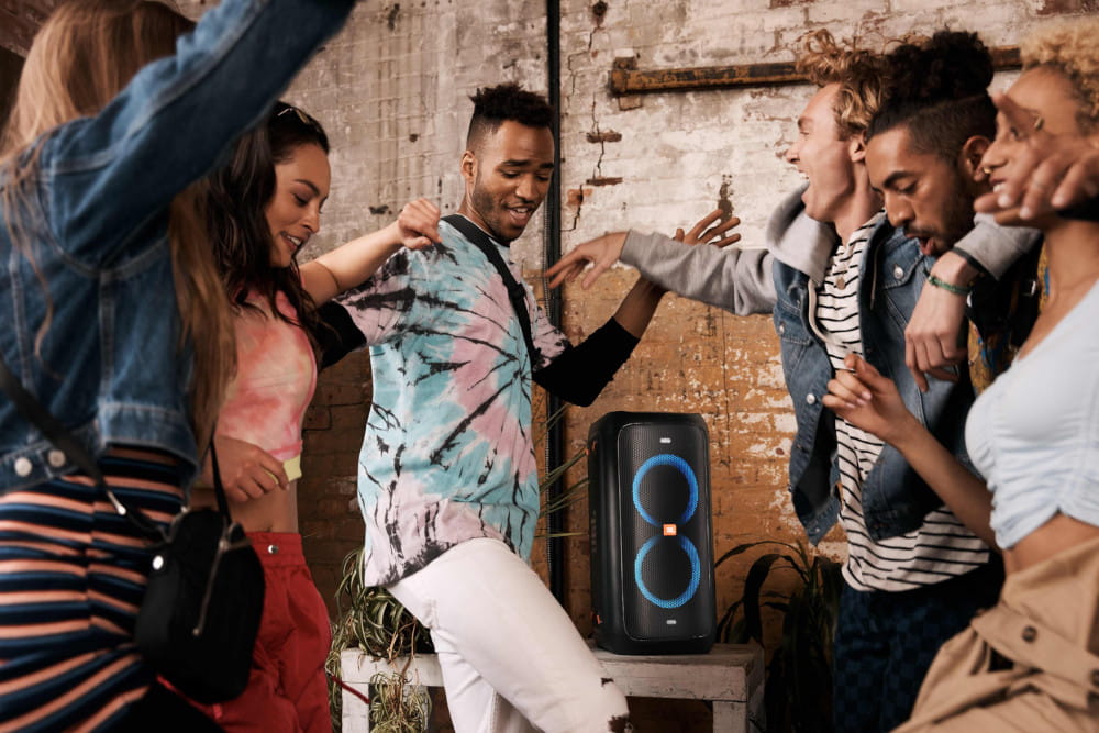 Zorganizuj najgorętszą imprezę w mieście. JBL PartyBox 100 generuje 160 W powalającego dźwięku JBL. Rozpocznij imprezę, kiedy i gdziekolwiek potrzebujesz.