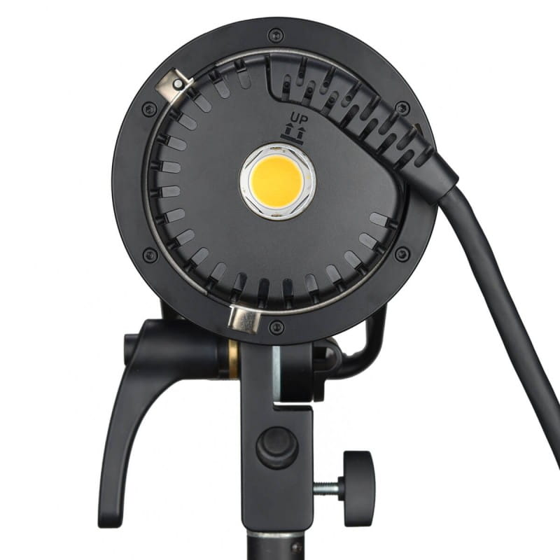 Godox H600P posiada uniwersalne mocowanie do statywu studyjnego, a kąt nachylenia głowicy może być regulowany. Głowica wyposażona jest w mocowanie modyfikatorów światłą typy Bowens oraz z uchwyt do parasolki.