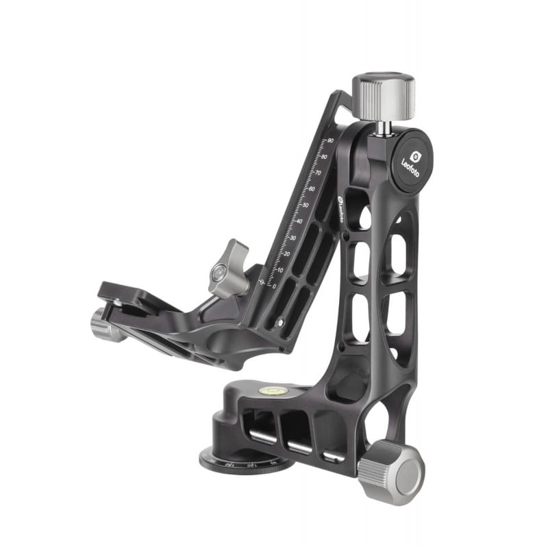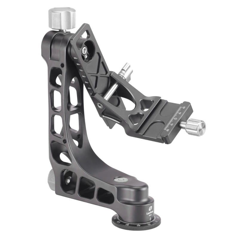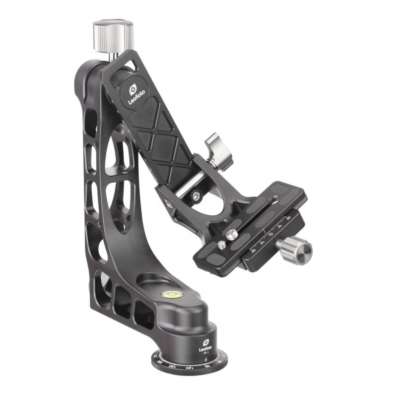 Głowica Leofoto PG-1 oferuje najwyższy standard obsługi ciężkich teleobiektywów i doskonale sprawdzi się w fotografii przyrody i sportowej. W zestawie z głowicą jest oferowana szybkozłączka o długości 100mm kompatybilna z systemem Arca-Swiss. Po bokach ramienia znajdują gniazda montażowe na gwint ¼ cala dzięki którym do głowicy można zamontować ramię przegubowe do instalacji dodatkowych akcesorii lub smartfona. Na głowicy są wygrawerowane skale które obrazują pozycję obrotową (0-360 °), wysokości platformy (0-90mm) i położenie płytki Arca Swiss (-20mm do + 20mm).