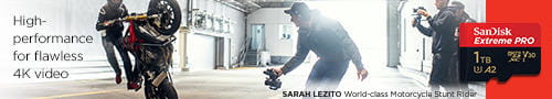 Idealne rozwiązanie do nagrywania przygód poza domem, weekendowych wyjazdów lub wydarzeń sportowych bez utraty choćby jednej klatki. Dzięki pojemności sięgającej 1TB (1) oraz klasom szybkości UHS 3 (U3) i Video Speed Class 30 (V30) karta SanDisk Extreme® PRO microSD™ UHS-I pozwala nagrywać filmy w jakości 4K UHD2 i Full HD bez zbędnych przerw. (4)