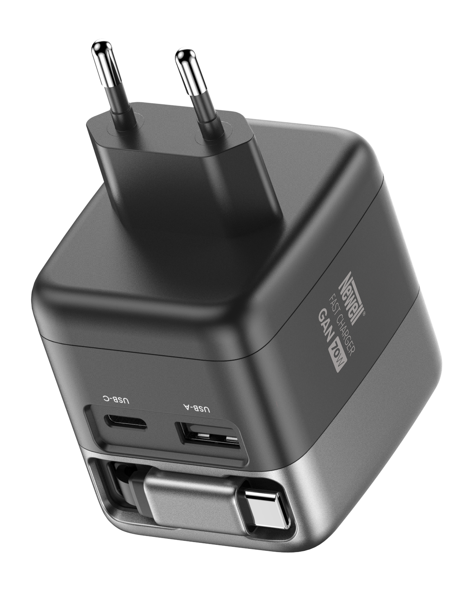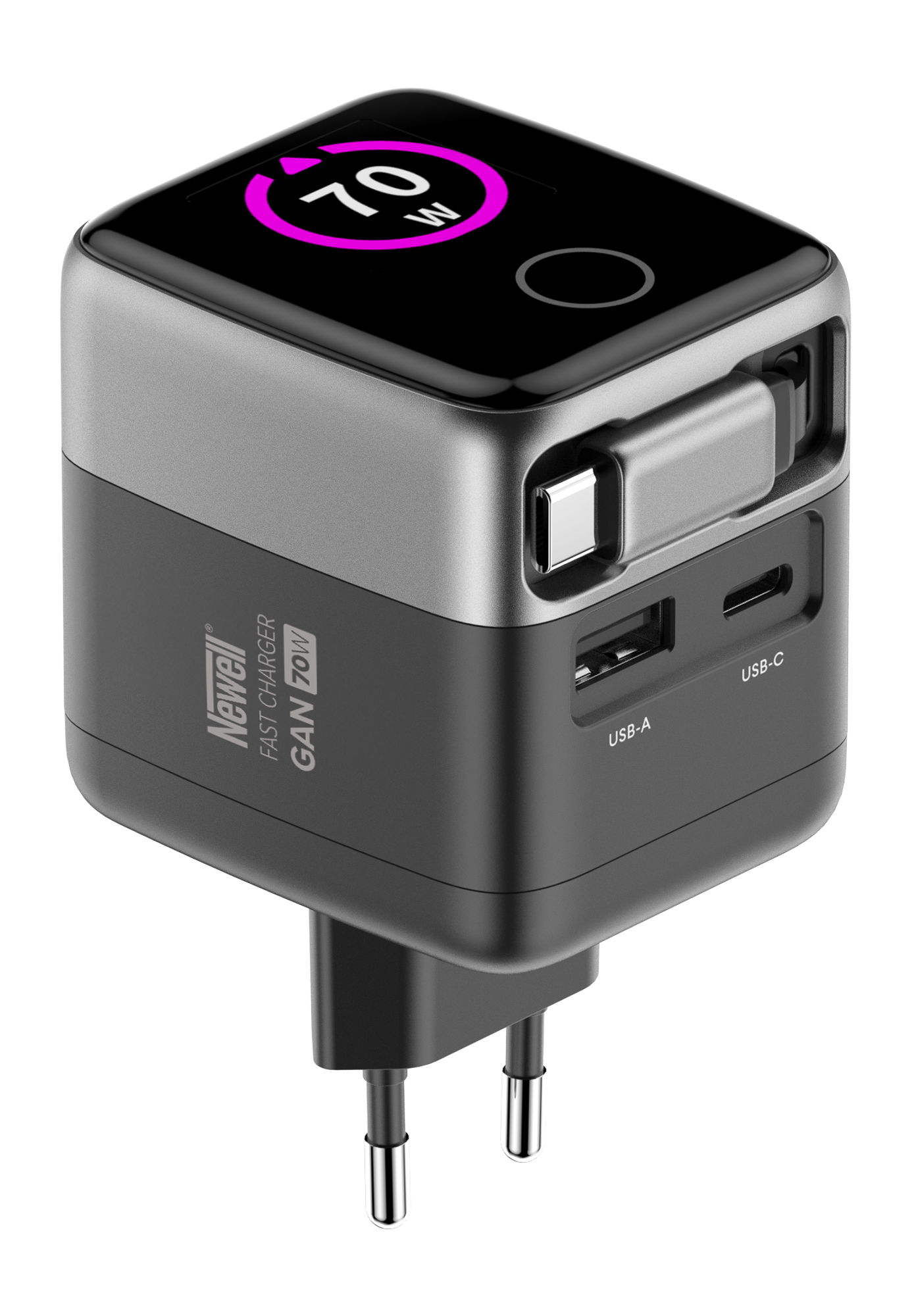 Ładowarka sieciowa Newell GaN 70 W TFT - EU - Kabel, który jest zawsze pod ręką