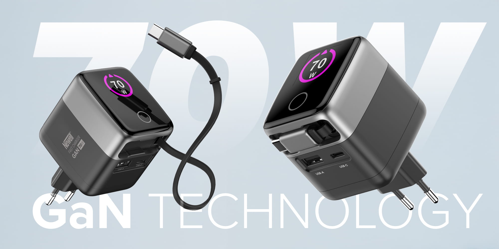 Perfekcyjne dopasowanie parametrów ładowania - Ładowarka sieciowa Newell GaN 70 W TFT - EU