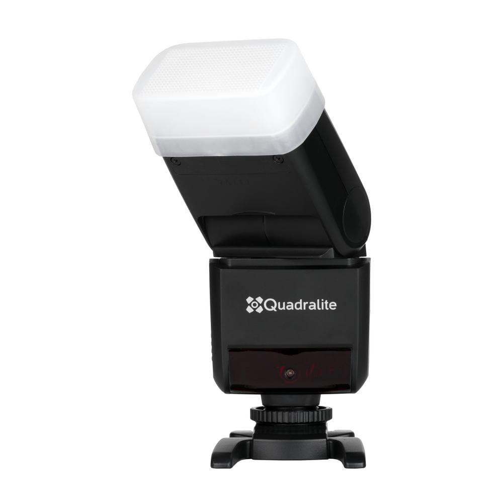 Lampa błyskowa Quadralite Stroboss 36 micro 4/3 MFT to mała i lekka lampa błyskowa o liczbie przewodniej 36, która idealnie pasuje do aparatów bezlusterkowych oraz kompaktowych. Lampa błyskowa Quadralite Stroboss 36 micro 4/3 MFT waży jedynie 200 g a po zamontowaniu na aparat i skierowaniu głowicy do przodu ma jedynie 95 mm wysokości. Pomimo tak niewielkich rozmiarów jej głowica błyskowa obraca się w zakresie 270º w płaszczyźnie poziomej oraz 97º w pionowej. Pozwala to na dużą swobodę w odbijaniu światła błyskowego od sufitu i ścian niezależnie od zorientowania aparatu na zdjęcia w kadrze portretowym i poziomym.