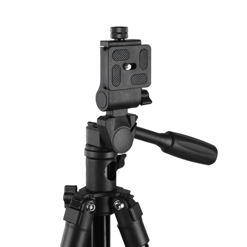 Zintegrowana głowica 3D umożliwia regulację położenia aparatu w trzech płaszczyznach: głowica może być obracana dookoła własnej osi, pochylana do przodu i do tyłu oraz odchylana w lewą stronę w zakresie 90°. Każde położenie jest blokowane niezależnie. Odpinana szybkozłączka spełnia standard arca swiss, dzięki czemu na statywie można też zamontować bezpośrednio inne akcesoria fotograficzne, np. uchwyt do telefonu Ulanzi ST-03 czy Ulanzi ST-14. Sama szybkozłączka posiada śrubę ze standardowym gwintem fotograficznym 1/4''. Gumowe nakładki na jej powierzchni stabilizują aparat i chronią jego obudowę przed zarysowaniem.