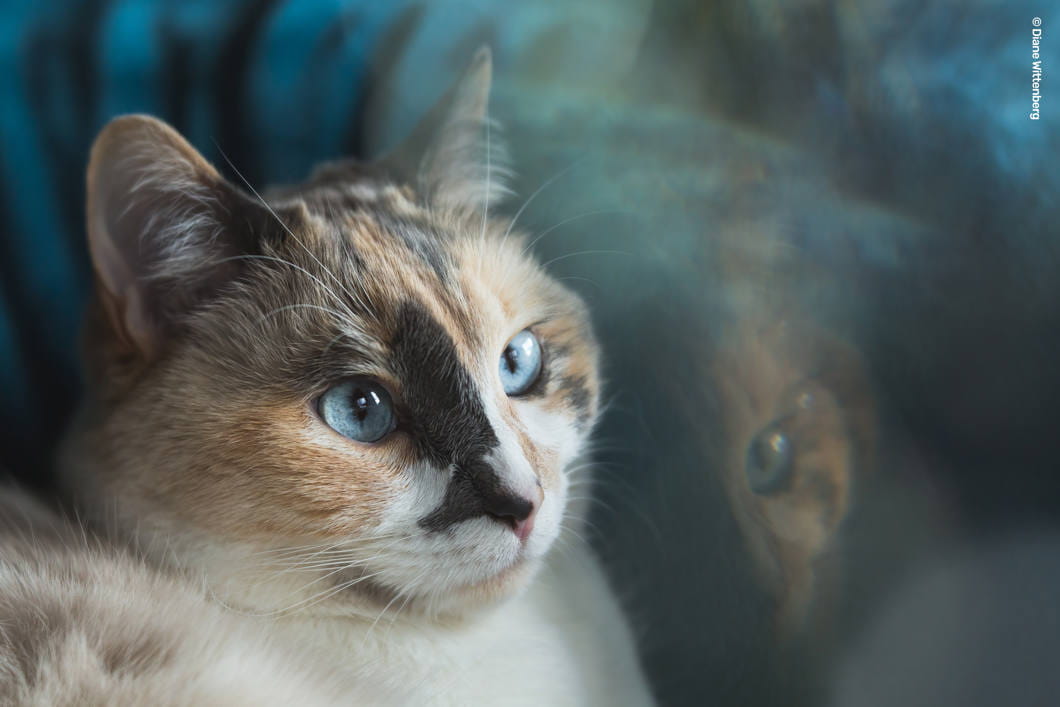 Ten szklany kryształ z silnymi efektami kolorystycznymi wykorzystuje duże, symetryczne fasety, aby rozbić obszary obrazu odważnym, nasyconym wzorem złożonym z elementów odblaskowych i załamujących światło.
