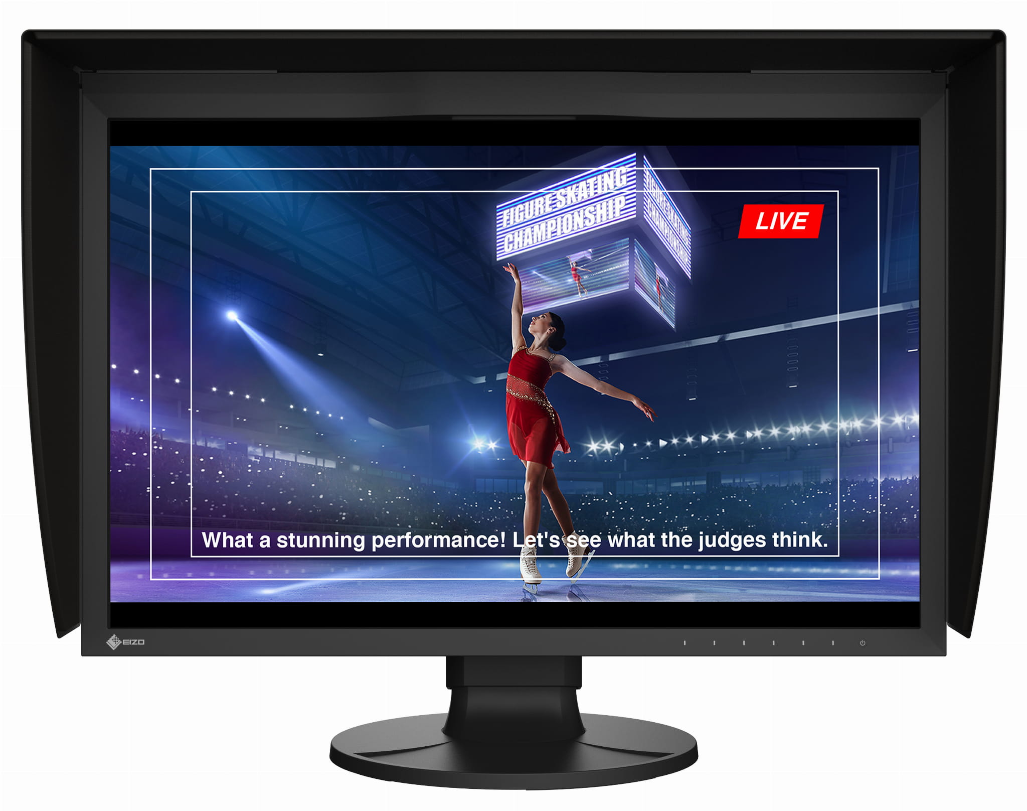 Monitor oferuje wysoki współczynnik kontrastu 1800:1* zgodnie ze standardem DCI. Umożliwia to wyświetlanie „prawdziwych” czerni, które z reguły są trudne do osiągnięcia w typowych monitorach LCD. Nawet przy patrzeniu na ekran z boku w słabo oświetlonym studio ciemne tony zachowują swoją głębię.