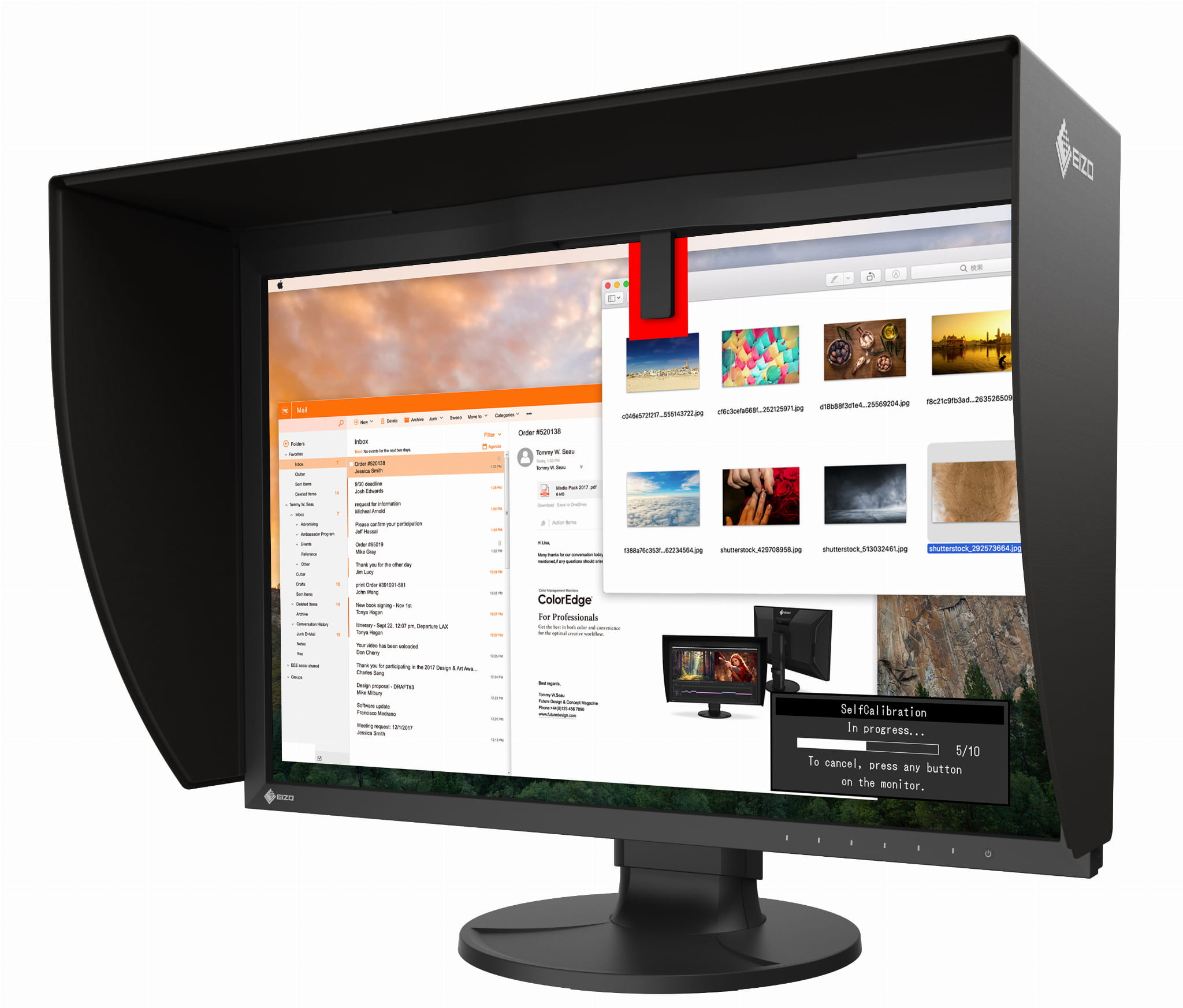 Aby zapewnić wierne odwzorowanie kolorów, należy przeprowadzać regularną kalibrację monitora. Autorskie oprogramowanie EIZO ColorNavigator 7 to precyzyjne i intuicyjne w obsłudze rozwiązanie przeznaczone do zarządzania kolorem. Umożliwia m.in. stworzenie harmonogramu automatycznej kalibracji, jednoczesną kalibrację wszystkich trybów wyświetlania obrazu oraz przeprowadzenie korelacji z zewnętrznymi czujnikami. Dane kalibracji zapisywane są w monitorze zamiast w systemie operacyjnym, dzięki czemu użytkownik nie musi powtarzać kalibracji, gdy korzysta z innego komputera.