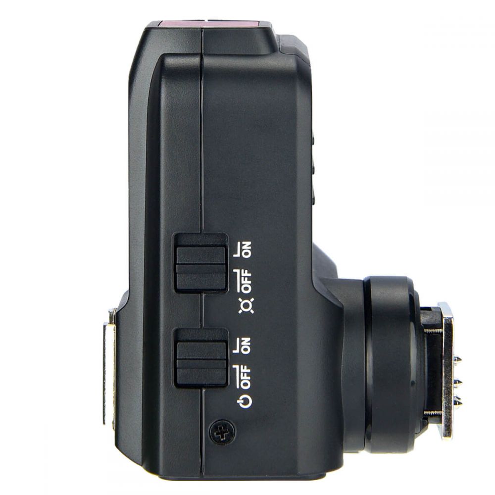 Pokrętło sterujące i niemal wszystkie klawisze zostały ulokowane po lewej stronie obudowy co powoduje, że nie trzeba odrywać prawej ręki trzymającej aparat, aby dokonać zmian w mocy oświetlenia. Na górnym panelu obudowy umieszczona jest stopka służąca do podłączenia nadajnika innego systemu radiowego np. Quadralite Navigator Kit, i używania go jednocześnie z Quadralite Navigator X Plus (górna stopka połączeniowa nie jest przewidziana do tego, aby podpinać do niej lampy błyskowe). Z przodu obudowy umieszczona jest dioda, której podstawowym zadaniem jest wspomaganie automatycznych systemów ustawiania ostrości, w których wyposażone są aparaty (wspomaganie autofokusa nie działa z wszystkimi aparatami. Więcej szczegółów znajduje się w instrukcji obsługi nadajnika). Przyda się to szczególnie w sytuacjach, gdy sesja odbywa się w warunkach słabego oświetlenia zarówno w studiu jak i poza nim. Podłączenie nadajnika do aparatu zostało udoskonalone i opiera się na stopce wyposażonej w mechanizm blokady, który pozwala na szybkie podpięcie i odpięcie urządzenia. Na bocznym panelu obudowy znajduje się złącze USB typu C, które służy do aktualizacji oprogramowania wewnętrznego oraz port synchronizacji przewodowej, który może zarówno przyjmować jaki wyprowadzać sygnał na zewnątrz. Nadajnik Navigator X Plus zasilany jest za pomocą dwóch baterii typu AA.