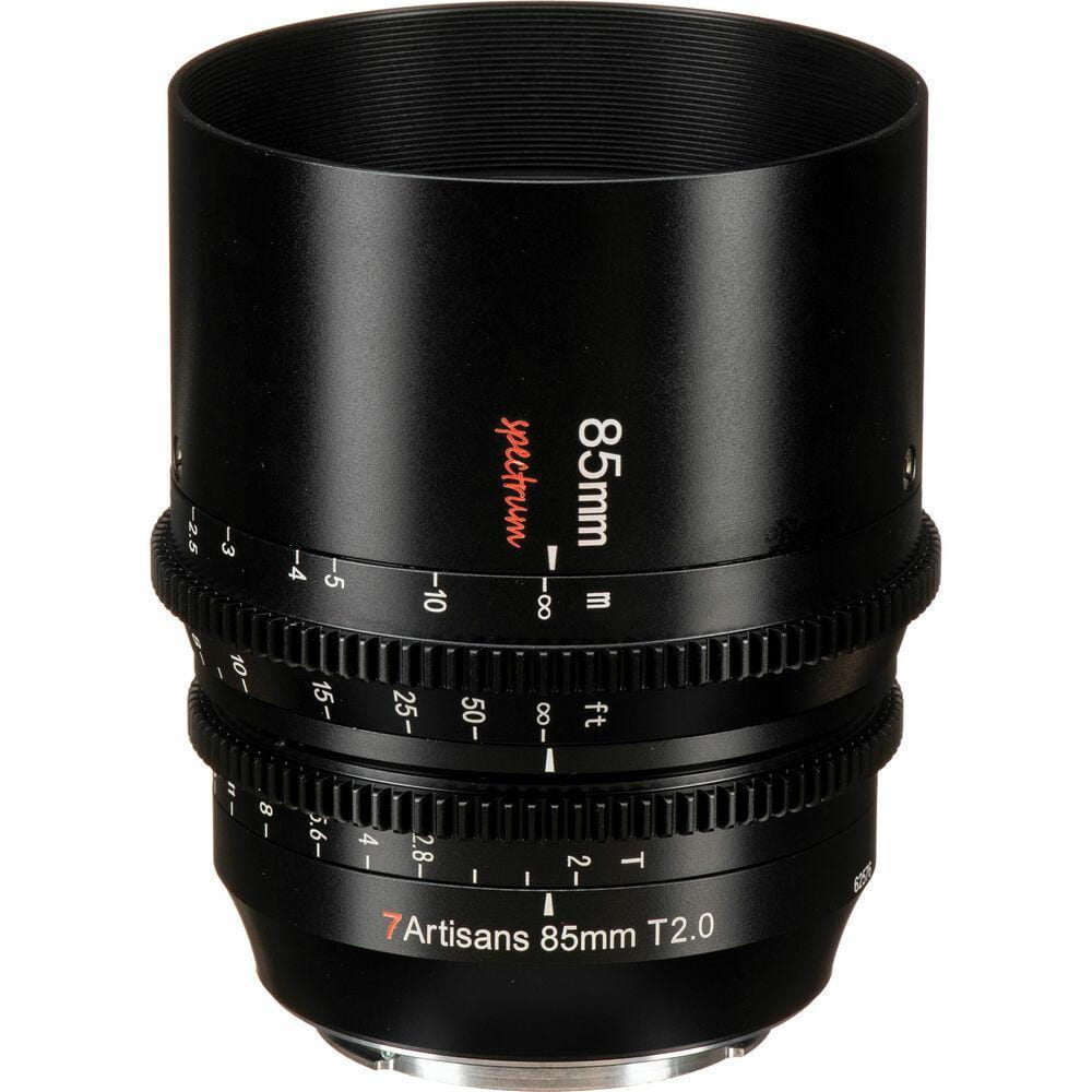 7Artisans 85mm T2.0 to poklatkowy obiektyw filmowy dedykowany do pracy z kamerami i aparatami cyfrowymi posiadającymi mocowanie Sony E. Model ten jest kontynuacją linii obiektywów Vision przeznaczonych na matryce Super 35 ze znakomitym światłem T1.05. Tor optyczny 7Artisans 85mm T2.0 składa się z 9 soczewek ustawionych w 8 grupach a 10 listkowa przysłona jest odpowiedzialna za tworzenie pięknych nieostrości w tle. Oznaczenia wartości przysłony i odległości znajdują się po obu stronach obiektywu i są podawane w metrach i stopach. Obiektyw posiada kąt widzenia 28,4°, a minimalna odległość ostrzenia wynosi 0,79 m. Średnica gwintu na filtry wynosi 82mm i jest taka sama w linii obiektywów Spectrum jak i Vision.