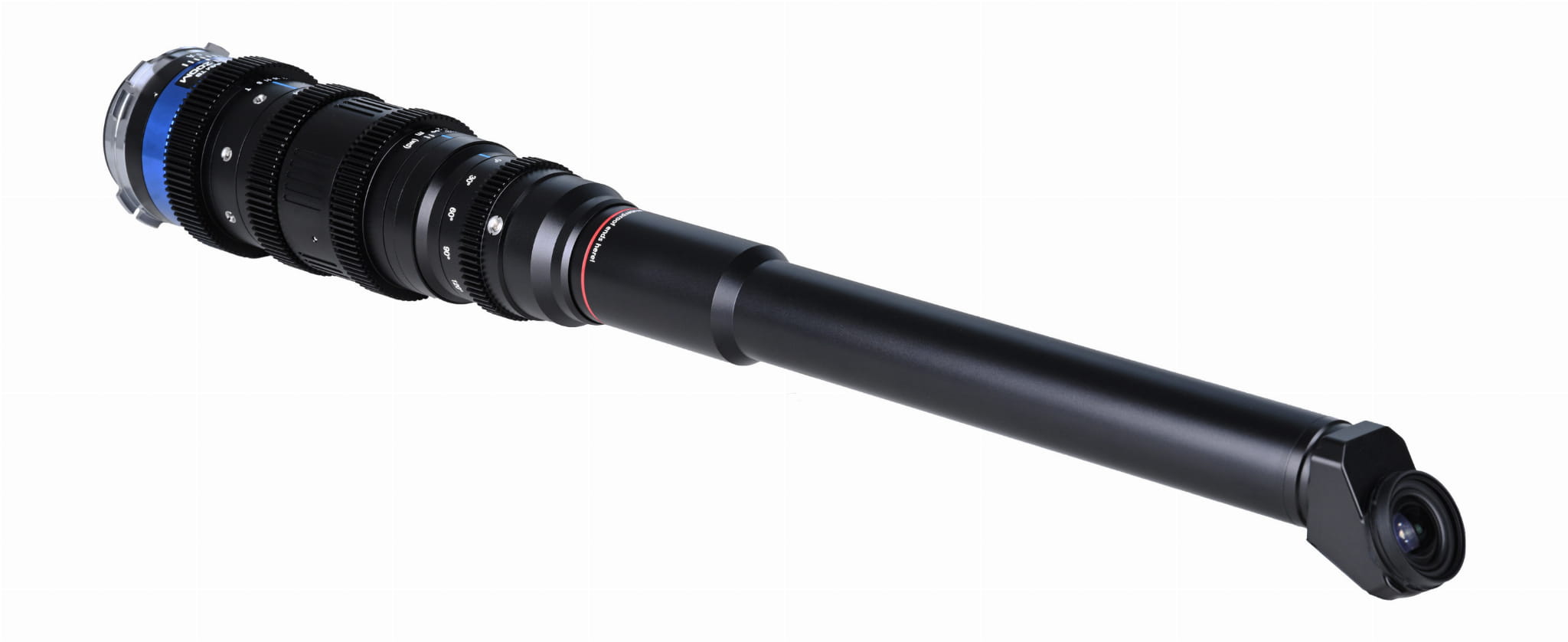 - Element optyczny 35° – oko obiektywu skierowane pod kątem 35° względem osi tubusu umożliwia wygodne filmowanie z góry i z dołu bez konieczności przechylania kamery. Idealny do ujęć produktowych, kulinarnych oraz wszędzie tam, gdzie potrzebna jest perspektywa pod kątem, a tradycyjne ustawienie kamery jest niepraktyczne. Obrót o 360° pozwala precyzyjnie kontrolować orientację kadru.