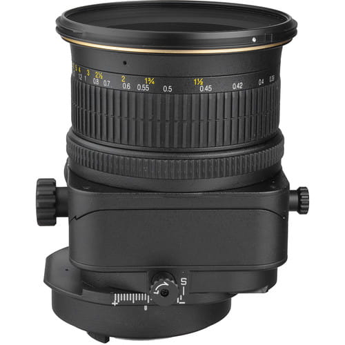 Standardowy teleobiektyw Nikon Nikkor 85mm z funkcją kontroli perspektywy (PC-E) +/-11,5 mm i pokłonu +/-8,5stopni. Możliwość obrotu o 90 stopni, w krokach co 30 stopni. Obiektyw typu Tilf-Shift.