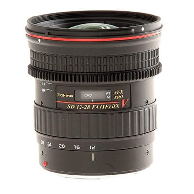 Tokina AT-X 12-28 PRO DX V to obiektyw o ogniskowej 12-28mm (dzięki czemu jest obiektywem bardziej uniwersalnym) przeznaczony do aparatów formatu APS-C. W porównaniu do wersji fotograficznej wprowadzono udogodnienie w postaci pierścienia zębatego. Zwiększa to komfort filmowania lustrzanką z systemem follow-focus. Pomimo zastosowania pierścienia zębatego w dalszym ciągu można korzystać ze wszystkich funkcji, które oferuje wersja fotograficzna – łatwe przełączanie autofokusa One-Touch-Focus-Clutch oraz zmiana ogniskowej. Nowa konstrukcja optyczna daje doskonałą rozdzielczość obrazu, nawet w przypadku matryc APS-C.