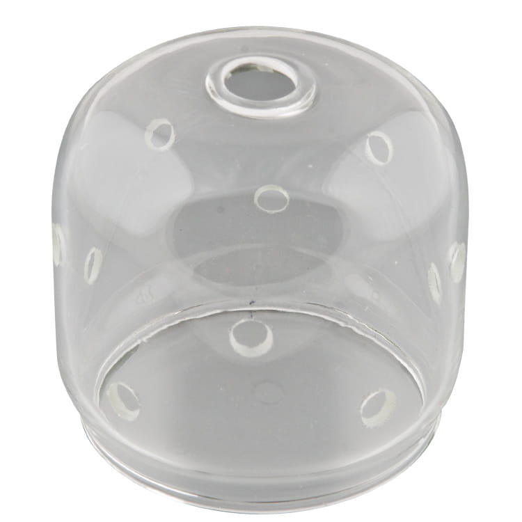 Szklana osłona palnika lamp studyjnych. Pasująca m.in. do lamp Jinbei serii MSN NEW oraz Pilot New. Osłonka wykonana została z odpornego na działanie wysokich temperatur szkła. Otwory w ściankach pozwalają odprowadzać ciepło palnika.
