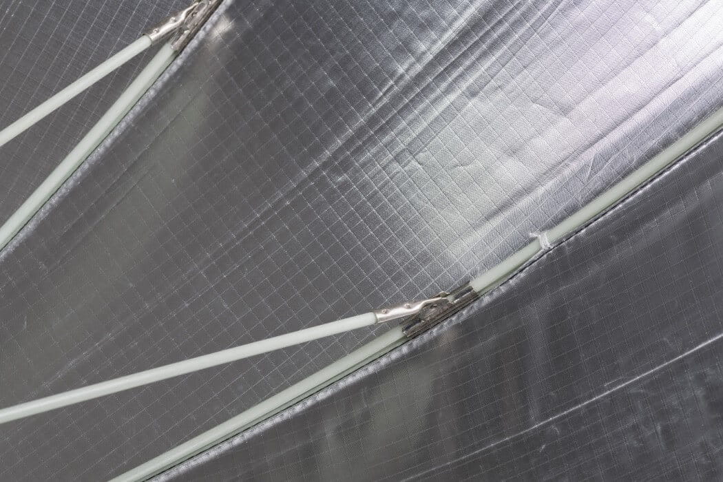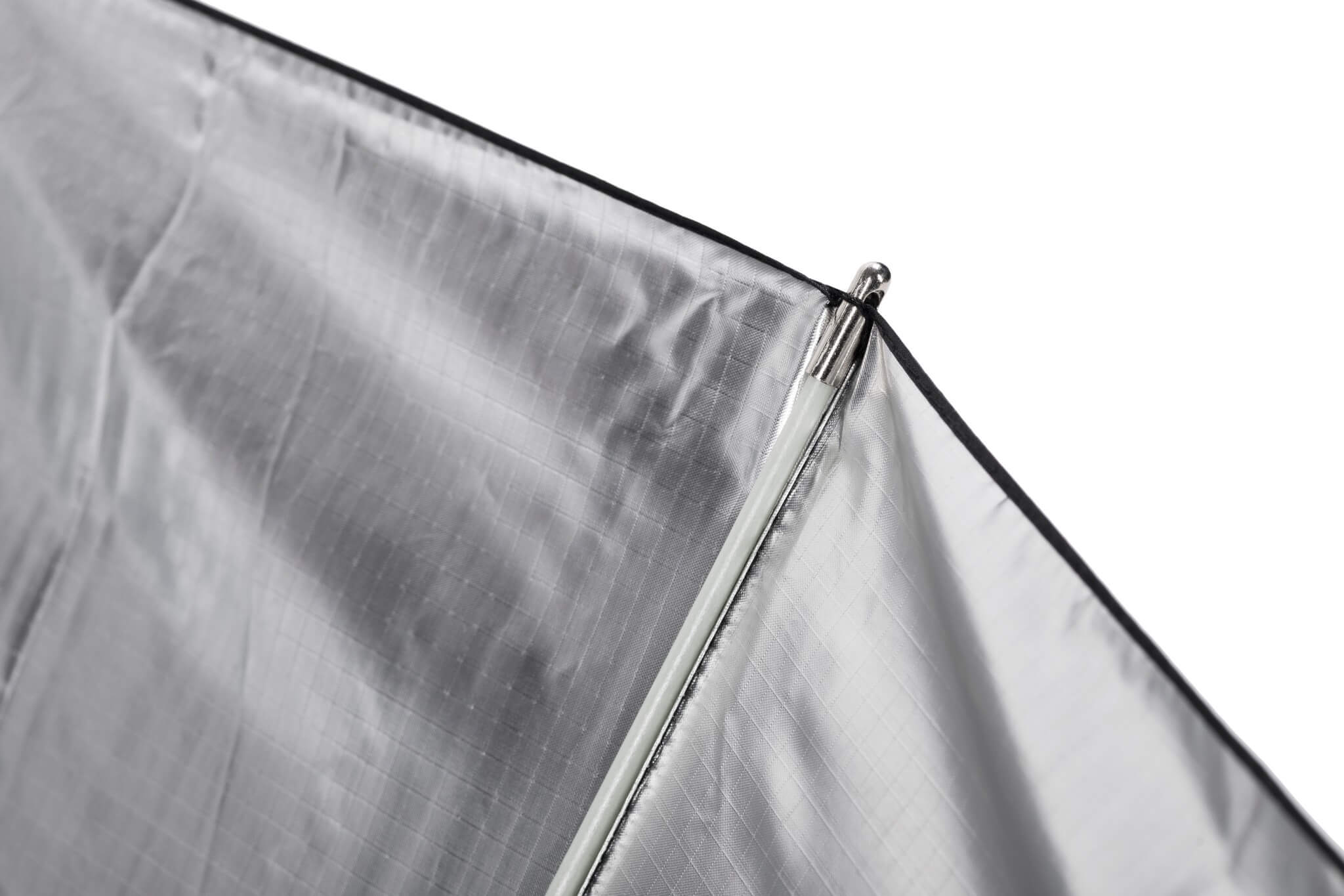 Wewnętrzna powierzchnia Quadralite Space 105 pokryta jest srebrnym, błyszczącym wykończeniem, które odbija światło, nadając mu silny charakter. Ponadto duża powierzchnia parasola składająca się z 16 elementów powoduje, że fotografowany obiekt będzie oświetlony twardo, a cienie będą mocno zarysowane.