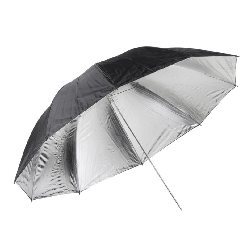 Parasolka ta posiada srebrną powierzchnię odbijającą. W odróżnieniu od parasolki białej, srebrna daje światło bardziej kontrastowe. Parasolka ta jest lekka, szybka w montażu i daje się łatwo przenosić. Jest idealnym rozwiązaniem dla fotografów specjalizujących się w fotografii plenerowej potrzebujących modyfikatora światła zajmującego mało miejsca w ekwipunku. Znajdzie też zastosowanie w małych amatorskich studiach. Parasolka pasuje do każdego standardowego uchwytu, w który wyposażone są lampy studyjne Quadralite. Wykonana jest z materiału najwyższej jakości co zapewnia równomierny rozkład światła oraz zachowanie odpowiedniej temperatury barwowej. Parasolki srebrne Quadralite dostępne są w trzech rozmiarach: 91, 120 i 150 cm.