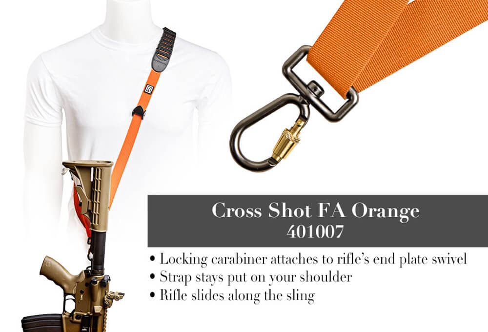 Pasek karabinowy Cross Shot FA Orange Rifle Sling with Swivel Locking Carabiner firmy BlackRapid jest świetny dla strzelców, którzy są w nieustannym ruchu. Cross Shot, dostępny w kolorze czarnym lub pomarańczowym, jest jedynym paskiem karabinowym BlackRapid, który oferuje niesamowitą gumową, antypoślizgową poduszkę na ramię - nie zsuwa się ona z ramienia, doskonale sprawdza się na nylonowych lub polarowych kurtkach. Pozwala on pozwala na błyskawiczne przeniesienie karabinu z pozycji do noszenia do pozycji do strzelania!