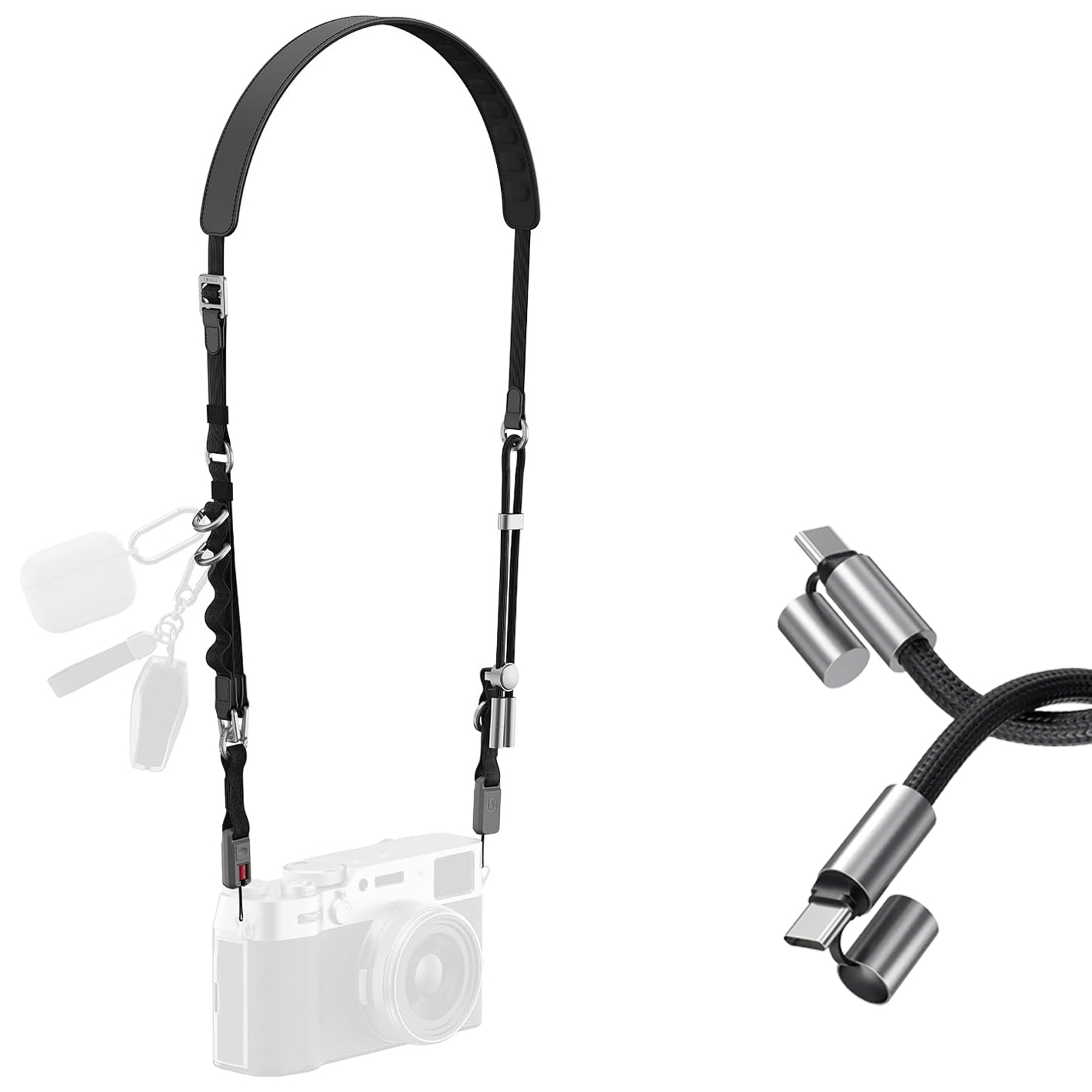 Ulanzi YF01 Y-Flex to coś więcej niż zwykły pasek. To w pełni modułowy system, który wygodnie dostosujesz do swoich potrzeb. Potrzebujesz paska na ramię do aparatu? Żaden problem. Szukasz paska nadgarstkowego? Wystarczy przepiąć mocowania. Chcesz naładować urządzenie w podróży? Pasek posiada zintegrowany kabel USB-C. Wszystkie elementy paska Ulanzi YF01 Y-Flex zaprojektowano w taki sposób, abyś mógł wygodnie przystosowywać go do różnych scenariuszy użytkowania. To oszczędność miejsca i pieniędzy – zamiast trzech osobnych wystarczy jedno.