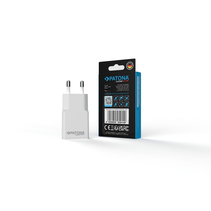 patona platinum ładowarka płaska gan pd20w 1x usb-c pd3.0 qc3.0 (biała)